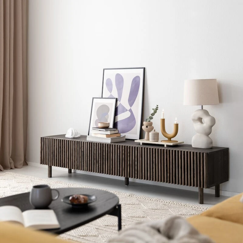 Laadukas ja tyylikäs Vieno tv-taso. Vieno tv-taso tuo kotiisi klassista tyylikkyyttä, mutta modernilla sipaisulla, jonka vuoksi se sopii erilaisiin sisustuksiin. Tammenväriset osat ovat tammea ja mustanväriset osat saarnia. Kaikki pinnat ovat vahattuja. Johdon läpivienti takaseinässä.