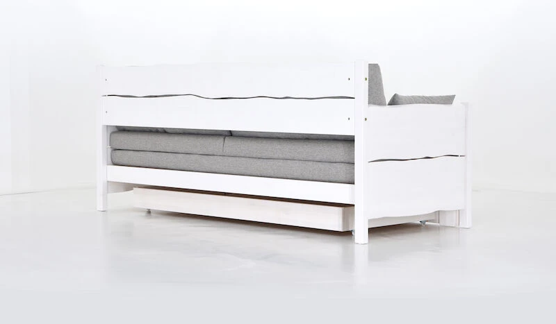 Village vuodesohvasta saa helposti levitettyä tilavan kahden hengen 160×200 cm vuoteen tilapäiseen nukkumiseen, vuoteessa on sälepohja. Mukaan kuuluu vuodevaatelaatikko, jossa on hyvin tilaa säilyttää petivaatteet ja lakanat. Tyylikkäs sängynrunko on valmistettu tuppeensahatusta männystä. Village taittopatjasarjassa on tyylikäs verhoilukangas, taustapuoli on on verhoiltu mustalla kankaalla. Eläväpintainen verhoilukangas on 100% polyesteriä. Patjasarja sisältää patjan, 2 kpl selkätyynyjä sekä 2 kpl pienempiä irtotyynyjä.