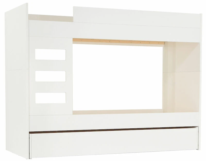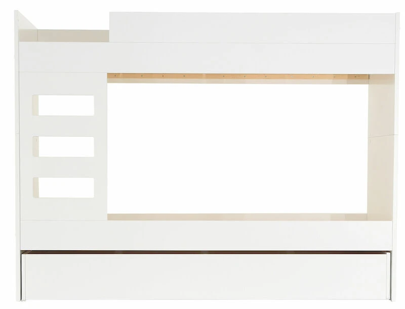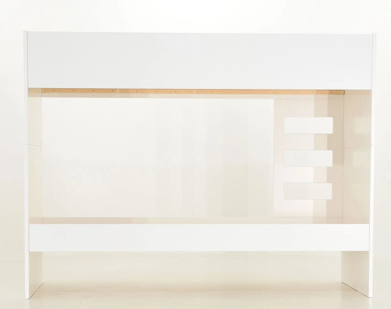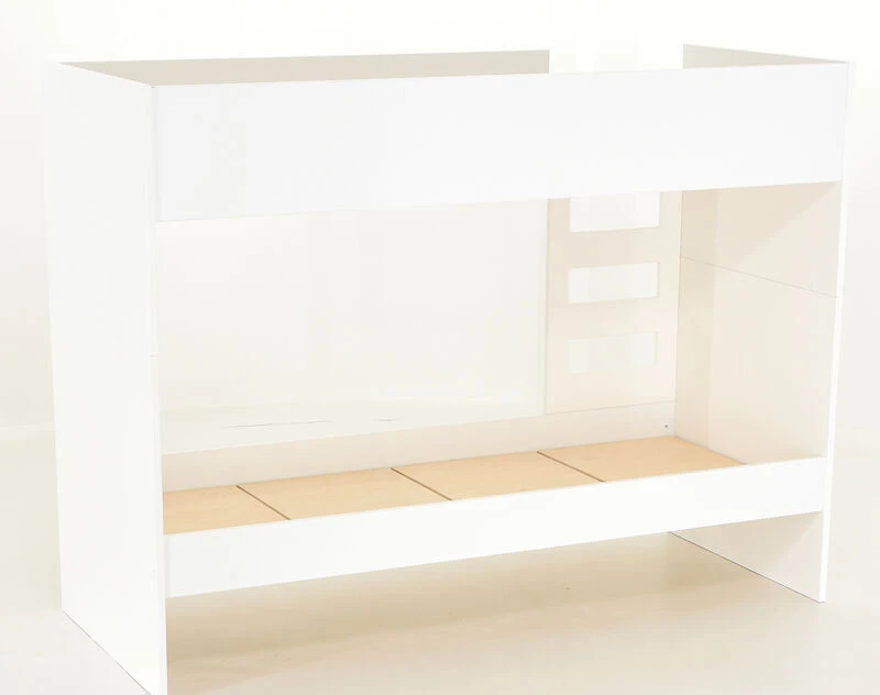 Tyylikäs ja selkeälinjainen Viviano kerrossänky 80x200cm. Sänky on valmistettu laadukkaasta ja kestävästä MDF-levystä. Pinta on maalattu ajattoman valkoiseksi. Kerrossänky säästää lattiapinta-alaa ja huoneeseen jää enemmän tilaa. Sänky voidaan koota myös peilikuvana. Sängynlaidan korkeus turvalaidan kanssa on 24,5 cm. Patjakoko 80×200 cm. Kuvissä näkyvä vuodevaatelaatikko on ostettavissa erikseen. Kerrossänky on mahdollista myös eroittaa kahdeksi erilliseksi sängyksi. Sängyt eivät kuitenkaan ole identtiset mm. päädyt jäävät korkeammaksi toisessa sängyssä.