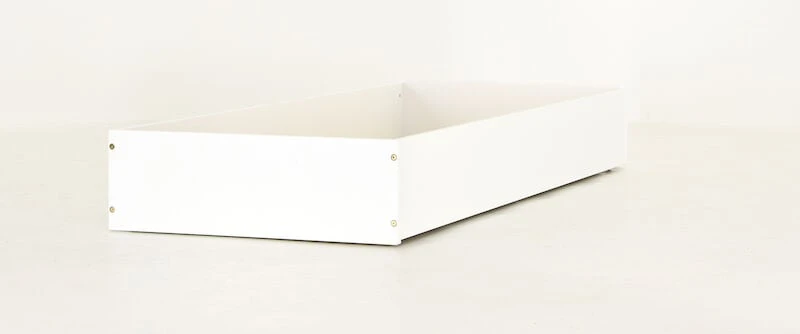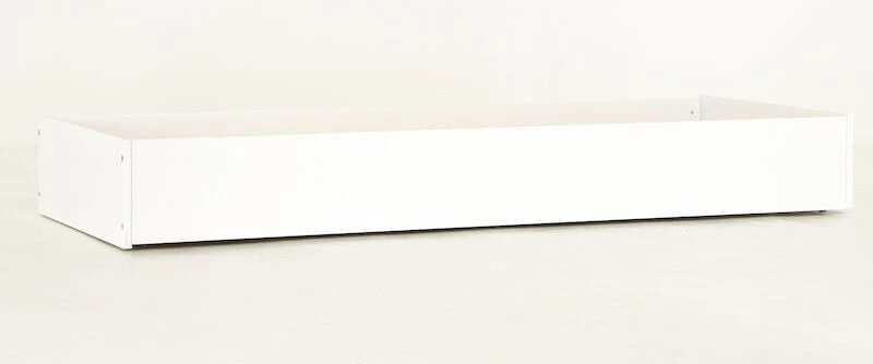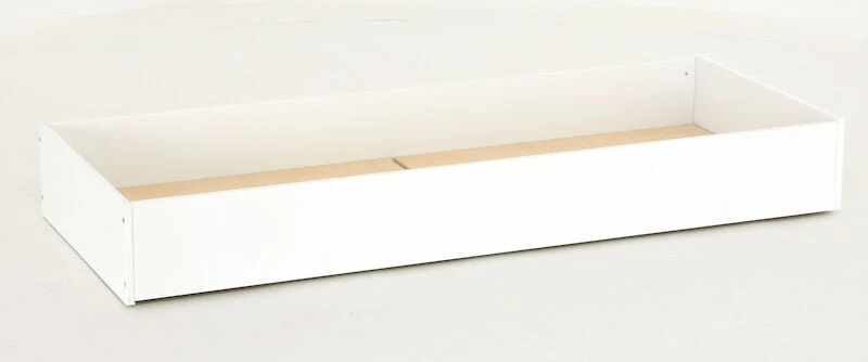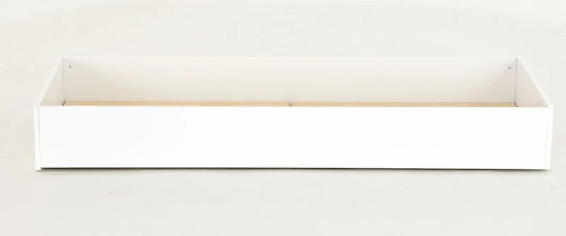 Valkoinen Viviano vuodevaatelaatikko 199 cm. Laatikon rakenne on tukeva ja laatu erinomainen. Laatikon pohjassa olevat rullat helpottavat laatikon siirtämistä. Laatikon pohja on umpinainen. Mikäli laatikossa käytetään patjaa pitää ottaa huomioon, että umpinainen pohja ei ole hyvä patjalle. Patjan alla ei pääse kunnolla ilma kiertämään minkä vuoksi on riski patjan kostumisesta ja jopa homehtumisesta. Mikäli laatikossa käytetään patjaa suosittelemme pohjaan n. 10 ilmareiän poraamista. Patjakoko 80×190 cm. Vuodevaatelaatikon laidat ovat 22 mm vahvaa MDF-levyä, joka on maalattu valkoiseksi.